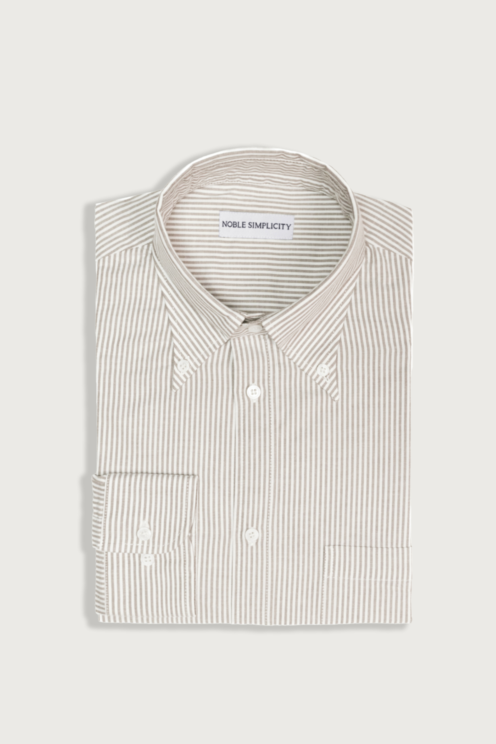 Рубашка OCBD (из ткани оксфорд с воротником на пуговицах) является данью уважения стиля Айви (Ivy Style). Изготовлена из ткани оксфорд в бежевую бенгальскую полоску.
